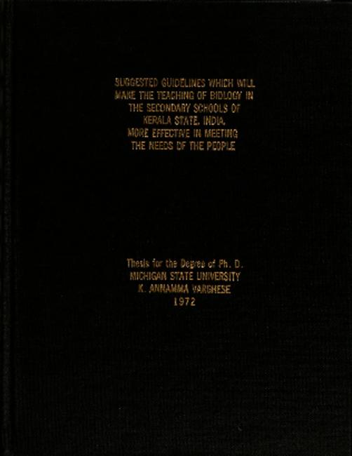 Suggested guidelines which will make the teaching of biology in the secondary schools of Kerala State, India, more effective in meeting the needs of the people