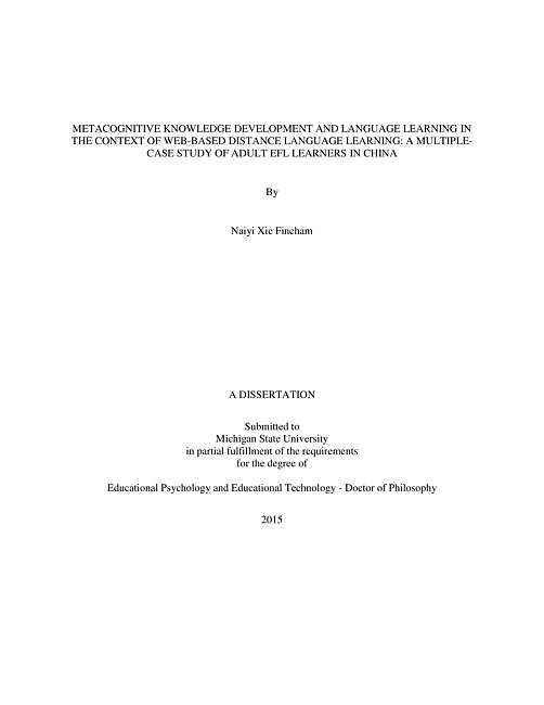 Metacognitive knowledge development and language learning in the context of web-based distance language learning : a multiple-case study of adult EFL learners in China