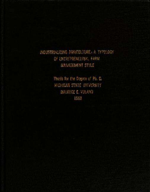 Industrializing agriculture : a typology of entrepreneurial farm management style
