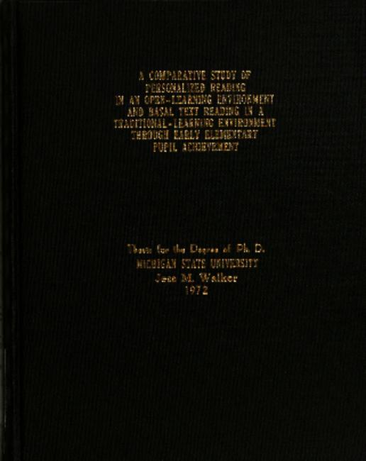 A comparative study of personalized reading in an open-learning environment and basal test reading in a traditional-learning environment through early elementary pupil achievement
