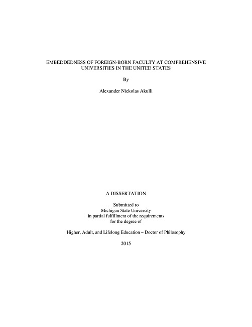 Embeddedness of foreign-born faculty at comprehensive universities in the United States