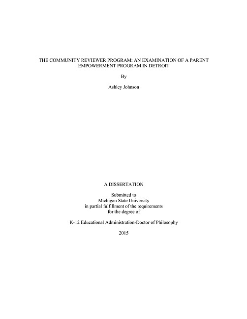 The community reviewer program : an examination of a parent empowerment program in Detroit