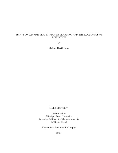 Chapter 1 adapts models of public and private employer learning to the market for teachers. It then use statewide, micro-level, administrative data from North Carolina to formulate value-added measures (VAMs) of teacher productivity. It exploits the adoption of VAMs of teacher performance by two of the largest school districts in the state, a shock to the available information for some, but not all, employers, to provide an initial direct test of asymmetric employer learning. Consistent with a shock to public information, for job moves within the district, this work finds that the adoption of value-added measures increases the probability that high-VAM teachers move to higher-performing schools. For moves out of the district, the impacts of policy are mitigated and even reversed by teachers with lower value-added measures becoming more likely to move to higher-performing schools. This adverse selection to plausibly less informed principals is consistent with asymmetric employer learning. Further, this chapter provides evidence that these moves lead to an increase in the sorting of teachers across schools within district, exacerbating the inequality in access to high quality teaching.Chapter 2 examines worker mobility, and empirically tests whether all firms learn about workers' abilities at the same rate (symmetric learning) or whether current employers accumulate and use private information about their workers (asymmetric learning). The employer learning model allows for both public and private learning, and thus, nests symmetric learning as a special case. The model predicts that conditional on employees' easily observable reference groups, workers are adversely selected into job switches and layoffs on the basis of difficult to observe characteristics, such as intellectual ability. Inversely, conditional on ability, the model predicts that as the mean ability of a worker's reference group increases, the likelihood of job separation increases. Under asymmetric private learning, these effects should become more pronounced over the length of continuous working spells. The same effects should diminish with experience, in the presence of public learning. In keeping with earlier examinations of employer learning hypotheses, this study examines evidence from the 1979 cohort of the National Longitudinal Survey of Youth, using AFQT as the difficult to observe measure of ability. Conditional on AFQT score, workers with higher education from more selective institutions are are positively selected into job switches and moves from employment to unemployment during recessions. The dynamics of these effects largely play out as predicted. While this works presents evidence adverse selection on the basis of AFQT, for job-to-unemployment transitions, the same is not true for job-to-job moves. The dynamic effects for AFQT are likewise inconsistent. Accordingly, the evidence largely rejects symmetric learning in favor asymmetric learning.Chapter 3 discusses estimation of multilevel/hierarchical linear models that include cluster-level random intercepts and random slopes. Viewing the models as structural, the random intercepts and slopes represent the effects of omitted cluster-level covariates that may be correlated with included covariates. The resulting correlations between random effects (intercepts and slopes) and included covariates lead to bias when using standard random-effects (RE) estimators such as (restricted) maximum likelihood. While the problem of correlations between unit-level covariates and random intercepts is well-known and can be handled by fixed-effects (FE) estimators, the problem of correlations between unit-level covariates and random slopes is rarely considered. When applied to models with random slopes, the standard FE estimator does not rely on standard cluster-level exogeneity assumptions, but requires an "uncorrelated variance assumption" that the variances of unit-level covariates are uncorrelated with their random slopes. This work proposes a "per-cluster regression" (PC) estimator that is straightforward to implement in standard software, and shows analytically that it is unbiased for all regression coefficients under cluster-level endogeneity and violation of the uncorrelated variance assumption. The PC, RE, and an augmented FE estimator are applied to a real dataset and evaluated in a simulation study that demonstrates that the PC estimator performs well in practice.