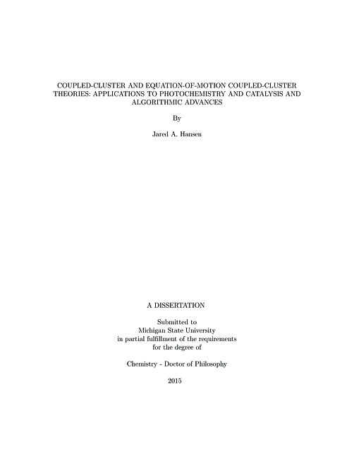 Coupled-cluster and equation-of-motion coupled-cluster theories : applications to photochemistry and catalysis and algorithmic advances