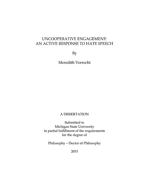 In the following I take up and elaborate on the claim that we do things with words. That is, as speakers in a culture bound by convention and ritual, words are not merely an expressive tool but a form of action. More importantly still, words can – and often do – wound in the very uttering of them. As to the question of how words wound, J.L. Austin provides us with the working theory – speech act theory. Like the illocutionary force of warning or marrying or christening, there is an illocutionary force of subordinating. Drawing together Austin's speech act theory with the theory of meaning and conversation provided by H.P. Grice, we have a formula for actively addressing the peculiar harm that is done in hate speech. If harm is well enough established then prima facie something ought to be done about that harm. What remains is the question: what does intervention look like? To that end, the main objective of this project is to show that there are avenues for interrupting the illocutionary force of subordination beyond either enlisting the coercive power of the state or leaving recourse to the “open marketplace of ideas.” Somewhere between the Dworkin-MacKinnon anti-pornography ordinance and Judith Butler’s “resignification” is an alternate path. In the following I develop a concept that I call "uncooperative engagement" as a means of redress that is both tenable and ethical.