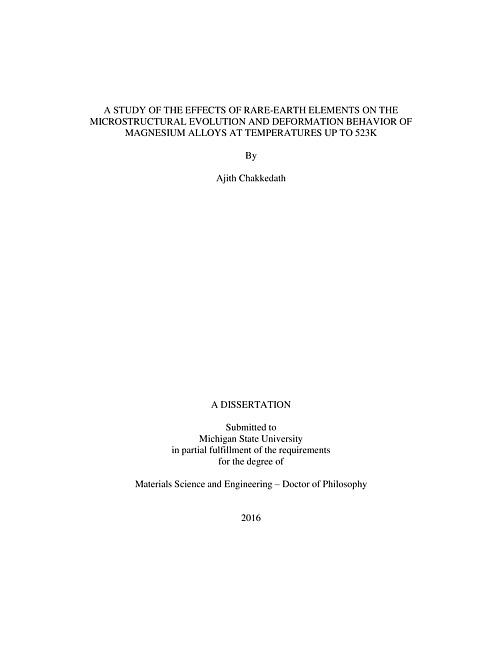 A study of the effects of rare-earth elements on the microstructural evolution and deformation behavior of magnesium alloys at temperatures up to 523K