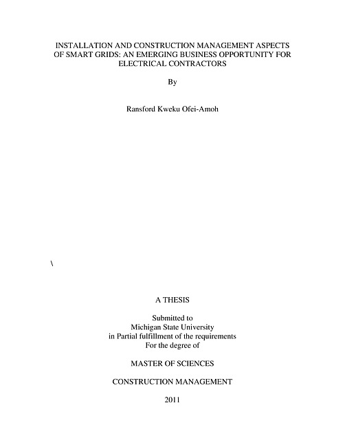 Installation and construction management aspects of smart grids : an emerging business opportunity for electrical contractors
