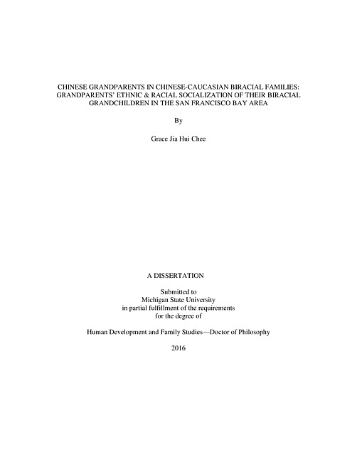 Chinese grandparents in Chinese-Caucasian biracial families : grandparents' ethnic & racial socialization of their biracial grandchildren in the San Francisco Bay Area