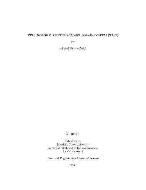 This thesis focuses on the design, fabrications and testing of a Technology Assisted Smart Solar-System (TASS) that uses a solar panel both as an energy source and a sensor for tracking. A microcontroller, interfaced to a mini solar-cell array, was used to control and test the systems efficacy to track the light source employing (a) a motorized solar panel and (b) a robotic platform. The TASS packaging and printed circuit boards were designed and fabricated using 3-D inkjet printing. A roof-top TASS was built to demonstrate an in- expensive application. The TASS developed in this work is also applicable to a light-tracking flowerpot for a smart home.