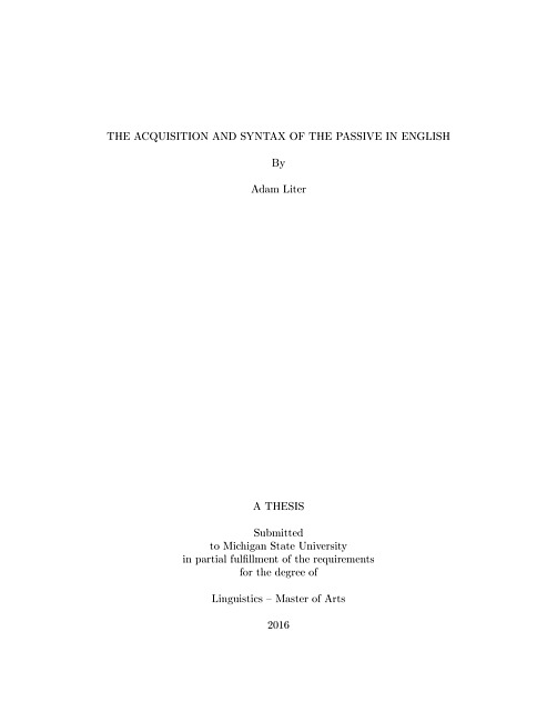 Children have been found to acquire passives of “actional” verbs prior to passives of “nonactional” verbs. This has come to be known as the Maratsos Effect (ME) and has been widely replicated (Sudhalter & Braine 1985, Gordon & Chafetz 1990, Fox & Grodzinsky 1998, Hirsch & Wexler 2006).I present two experiments that further investigate the ME. Researchers have not always been careful about using linguistic diagnostics for categorizing a verb as “actional” or “nonactional”. In the experiments reported here, verbs are split into three categories based on linguistic diagnostics for eventivity and agentivity. In Exp. 1, eventive agentive verbs (paint, fix, and wash) are tested against eventive nonagentive verbs (forget, find, and spot). In Exp. 2, the same eventive nonagentive verbs are tested against noneventive nonagentive verbs (hate, know, and love). I find evidence for a three-way distinction in the English- acquiring child’s acquisition path, rather than the two-day distinction which has classically been reported as the ME. Children learn the passives of eventive agentive verbs before the passives of eventive nonagentive verbs, which are in turn learned before the passives of noneventive nonagentive verbs.I then explore possible accounts of this three-way distinction. I explore the intuition that children initially posit a structure for the eventive nonagentive verbs and the noneventive nonagentive verbs where both arguments of the eventive nonagentive and noneventive nonagentive verbs are projected internally to the VP. If one adopts Collins’ (2005) analysis of the passive, then an account of the acquisition facts emerges on the basis of this intuition. However, this intuition cannot account for the facts if one adopts either Bruening’s (2013) analysis of the passive or Legate’s (2014) analysis of the passive.
