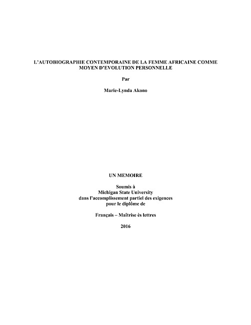 L'autobiographie contemporaine de la femme Africaine comme moyen d'evolution personnelle