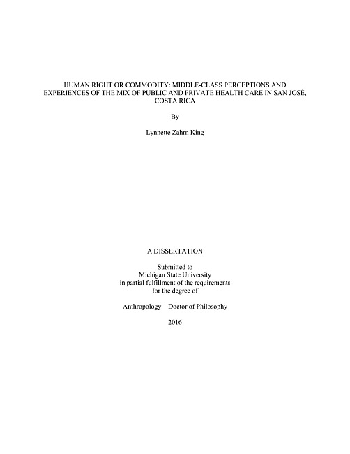 Human right or commodity : middle-class perceptions and experiences of the mix of public and private health care in San José, Costa Rica