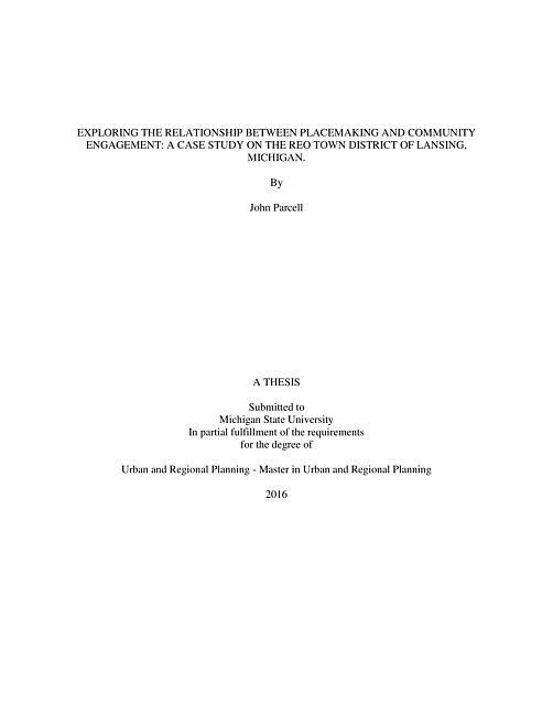 Exploring the relationship between Placemaking and community engagement : a case study on the REO Town District of Lansing, Michigan