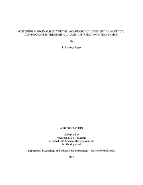 Fostering marginalized youths' academic achievement and critical consciousness through a values-affirmation intervention