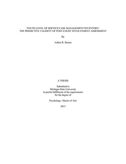 Youth level of service/case management inventory : the predictive validity of post-court involvement assessment