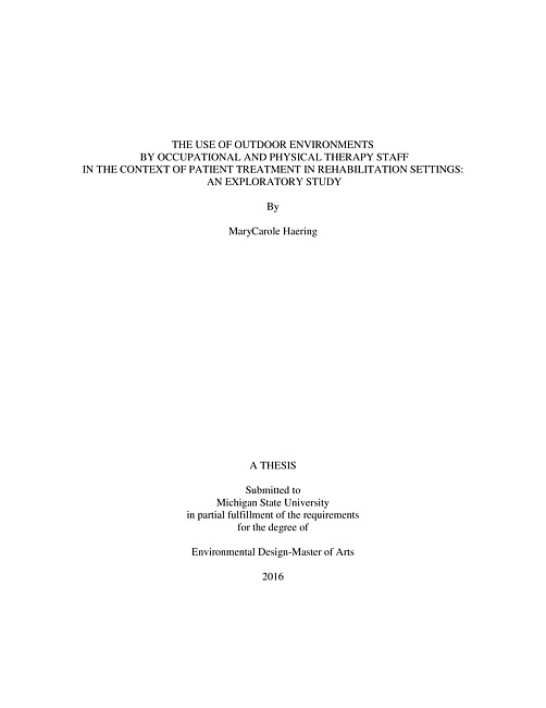 The use of outdoor environments by occupational and physical therapy staff in the context of patient treatment in rehabilitation settings : an exploratory study