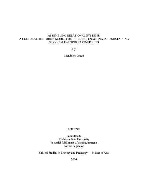 Assembling relational systems : a cultural rhetorics model for building, enacting, and sustaining service-learning partnerships