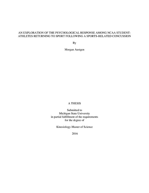 An exploration of the psychological response among NCAA student-athletes returning to sport following a sports-related concussion
