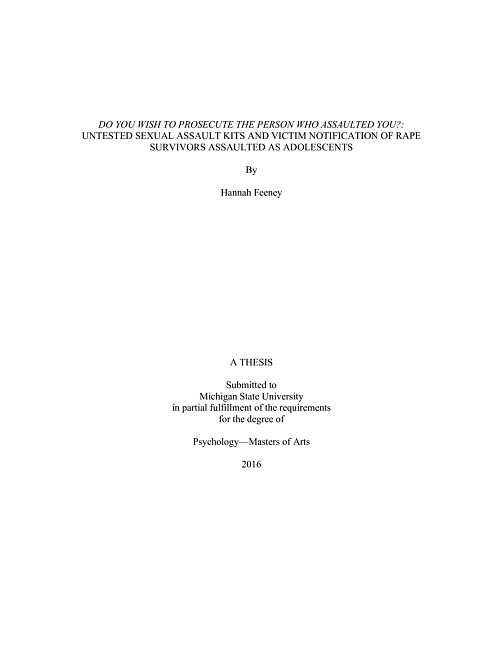 Do you wish to prosecute the person who assaulted you? : untested sexual assault kits and victim notification of rape survivors assaulted as adolescents