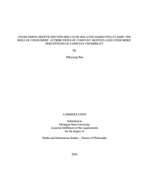 Overcoming skepticism toward cause-related marketing claims : the role of consumers' attributions of company motives and consumers' perceptions of company credibility