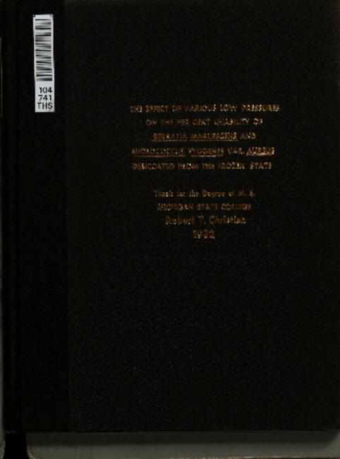 The effect of various low pressures on the percent livability of Serratia marcescens and Micrococcus pyogenes var. Aureus desiccated from the frozen state