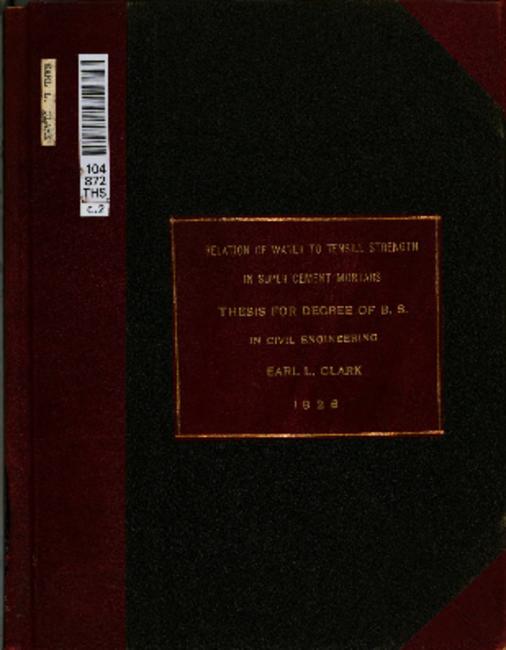 Relation of water to tensile strength in super cement mortars