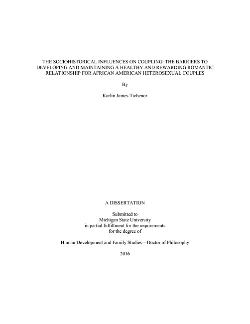 The sociohistorical influences on coupling : the barriers to developing and maintaining a healthy and rewarding romantic relationship for African American heterosexual couples