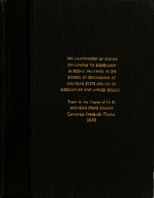 The relationship of science deficiencies to subsequent academic progress in the School of engineering at Michigan state college of agriculture and applied science