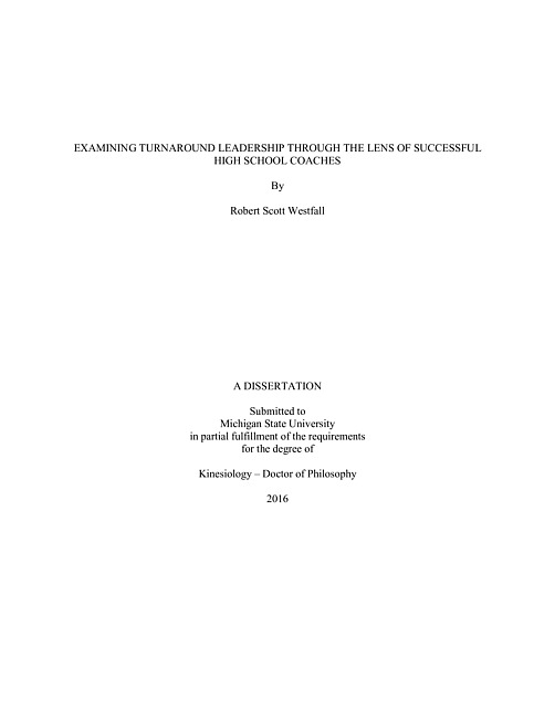 Turnaround leadership is a topic of particular interest within sports as many coaches are revered for their ability to transform a struggling team into a “winner.” A limited amount of research (Vallee & Bloom, 2005; Schroeder, 2010), however, has examined program building coaches that have led transformational team turnarounds. Therefore, the methods and intangibles necessary for achieving a coaching turnaround have remained undetermined to date. The present study examined high school football coaches (n=11) from the state of Michigan, who were noted for leading a dramatic turnaround at their high school over the course of the previous decade. In-depth interviews were conducted with each coach and hierarchical content analyses were conducted and a grounded theory developed. Prior to accepting their turnaround coaching positions, the high school teams the coaches chose to lead, had not experienced a winning season over a prolonged period of time (mean = 7.2 years). Meanwhile, five of the 11 programs had never qualified for the state playoffs in school history.Results revealed that upon being hired, these turnaround coaches experienced relatively quick success as they achieved a winning record (M = 1.73 years), and reached the state playoffs in a short period of time (M = 1.82 years), with each of the 11 teams achieving a winning record and qualifying for the playoffs within three years of hiring their new coach. Steps of the turnaround process observed across the coaches included establishing a vision for program success, assembling a staff of positive role models, formulating a strong plan, continuously selling their vision, generating buy-in from players and key members of the program, creating and celebrating early achievements, sustaining success through the establishment of new goals and benchmarks, and fighting the urge to become complacent once new levels of success were reached. Each of the turnaround coaches also reported incorporating a respectable strength and conditioning program into their team culture. Meanwhile, the philosophies of the majority of the coaches were characterized as “educational athletics,” in which they viewed their job as an extension of the classroom. Coaches often implemented character education into their football program and used their coaching position as a platform for teaching life lessons to their players. However, the most recurrent theme of the turnarounds, and the most recommended approach for achieving a coaching turnaround was establishing positive coach-athlete relationships. Every coach interviewed stressed that good coach-athlete relationships were an important component of their turnarounds. The steps and processes for generating a coaching turnaround are discussed, along with connections to previous studies and personal accounts of coaching turnarounds. Implications are included, along with limitations and directions for future research.