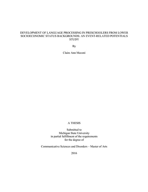 Development of language processing in preschoolers from lower socioeconomic status backgrounds : an event-related potentials study