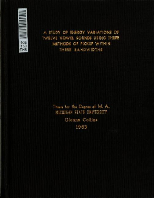 A study of energy variations of twelve vowel sounds using three methods of pickup within three bandwidths
