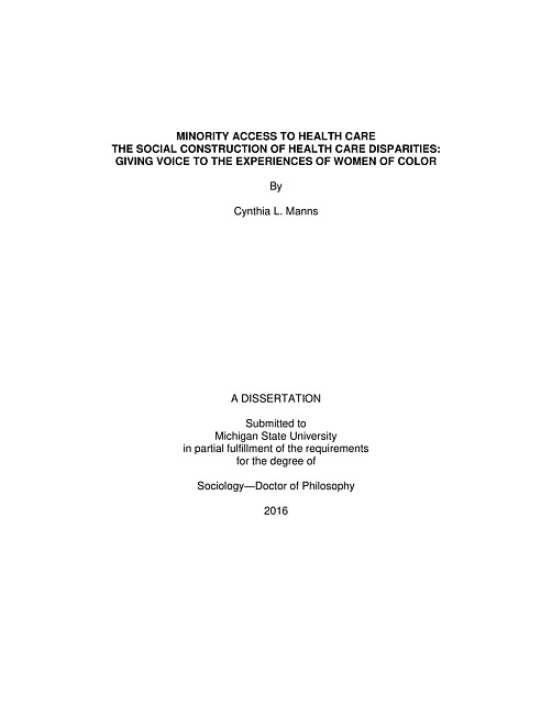 Minority access to health care the social construction of health care disparities : giving voice to the experiences of women of color
