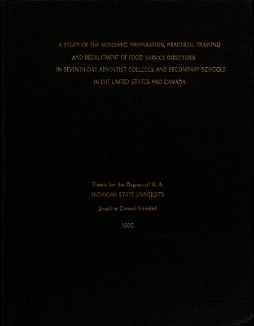 A study of the academic preparation, practical training and recruitment of food service directors in Seventh-Day Adventist colleges and secondary schools in the United States and Canada