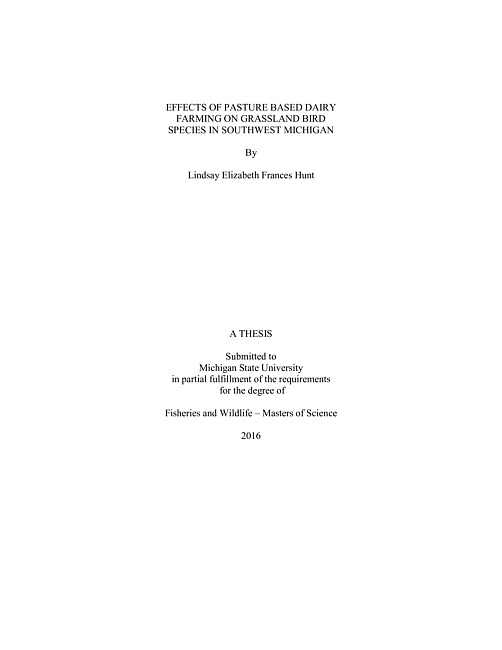 Effects of pasture based dairy farming on grassland bird species in southwest Michigan