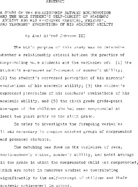 A study of the relationship between nonpromotion and the male student's self-concept of academic ability and his perceived parental, friends' and teachers' evaluation of his academic ability