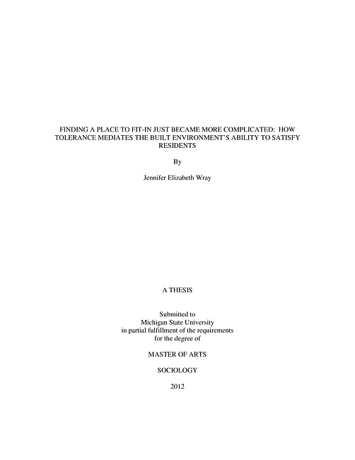 Finding a place to fit-in just became more complicated : how tolerance mediates the built environment's ability to satisfy residents