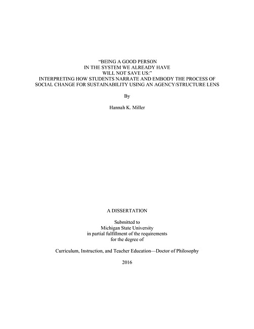 "Being a good person in the system we already have will not save us" : interpreting how students embody and narrate the process of social change for sustainability using an agency/structure lens
