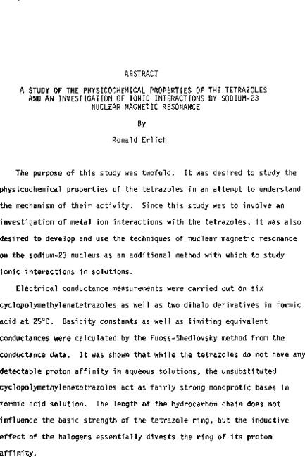 A study of the physicochemical properties of the tetrazoles and an investigation of ionic interactions by sodium-23 nuclear magnetic resonance
