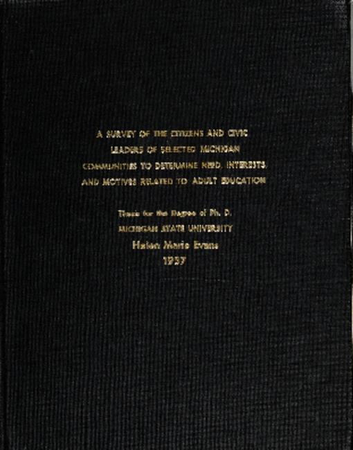 A survey of the citizens and civic leaders of selected Michigan communities to determine need, interests, and motives related to adult education