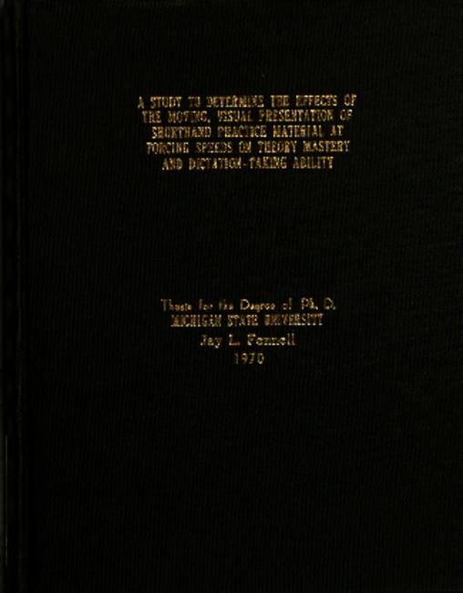 A study to determine the effects of the moving, visual presentation of shorthand practice material at forcing speeds on theory mastery and dictation-taking ability