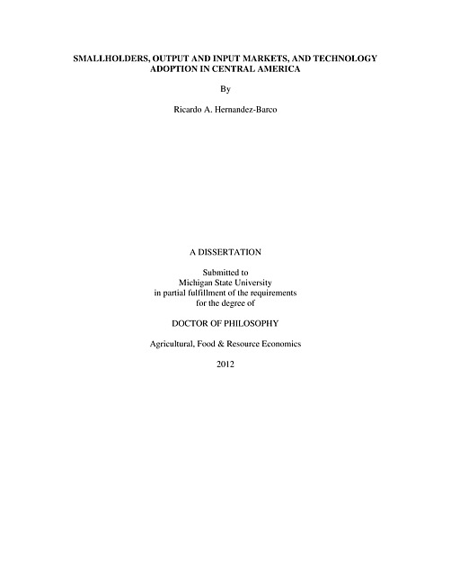 Chapter 1 analyzes the determinants of Guatemalan farmer participation in off-farm employment (in different activities, the lion's share of which is in local rural nonfarm employment (RNFE), as skilled RNFE and unskilled RNFE, and in agricultural wage employment (AWE)). The paper then analyzes how that participation in off-farm employment is correlated with farming technology and crop choice, in particular in terms of diversification into horticulture (versus traditional grain and bean farming). The paper uses a switching regression model applied to rural data in the LSMS dataset collected in Guatemala in 2000. The overall results suggest a virtuous triangle of income inter-sectoral diversification, agricultural diversification into higher value crops, and modernization of agricultural technology. This process appears to be spurred by overall development of agricultural markets and rur-urbanization. The concern is that this combination is uneven distributed, with the asset-poor participating least. This suggests policy interventions to help the poor have greater access to RNFE would spur diversification which helps incomes and manages risk, and technology modernization which spurs farm productivity.Chapter 2 explores whether farm land and non-land assets determine the participation of tomato growers in modern markets in Nicaragua, and how farmers' duration as supermarket suppliers affects the farm technology they use. The methodology is based on a survival analysis approach. We use data from a stratified random sample of tomato farmers in Nicaragua over a 10-year period. Our results show that participation in supermarket supply chains as supermarket supplier is not determined by farm size, contrary to a common hypothesis, and thus small farmers can be supermarket suppliers. However, non-land assets are important determinants of being in the modern channel. Duration as a supermarket supplier is positively correlated with farm asset accumulation and the use of modern technology (mainly in the form of capital-led intensification) of tomato farming - but negatively correlated with the share of highly toxic pesticides in overall pesticide use.Chapter 3 is an extension of chapter 2. This paper studies how product choice, perishability and modern farm technologies can be both causes and consequences of participation of smallholders in horticultural modern markets. The methodology is based on a survival analysis approach, we use data from a stratified random sample of 794 growers of six horticultural crops in Nicaragua in 2010. Similarly to the second essay, our results show that participation as supermarket supplier is not determined by farm size. However, the use of drip irrigation (a modern technology) significantly determines participation and duration as supermarket supplier. Production of highly perishable products and/or niche varieties is a competitive advantage for smallholders, as they tend to last longer as supermarket suppliers. Duration is positively correlated with indicators of farm modernization and intensification, while late adopters (long time to adoption periods) tend to overuse pesticides and are negatively correlated with indicators farm technology modernization.