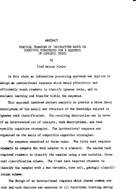 Vertical transfer of instruction based on cognitive strategies for a sequence of geologic tasks