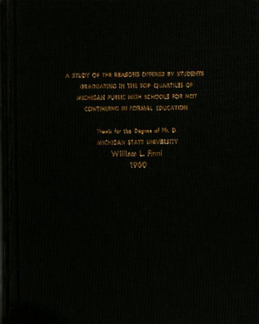 A study of the reasons offered by students graduating in the top quartiles of Michigan public high schools for not continuing in formal education