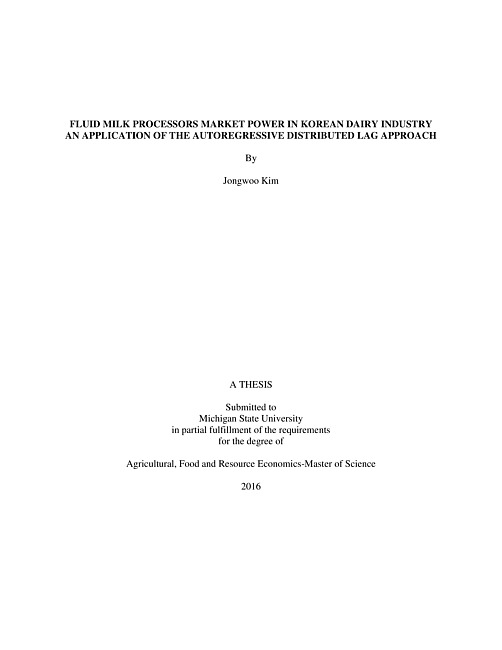 Fluid milk processors market power in Korean dairy industry : an application of the autoregressive distributed lag approach