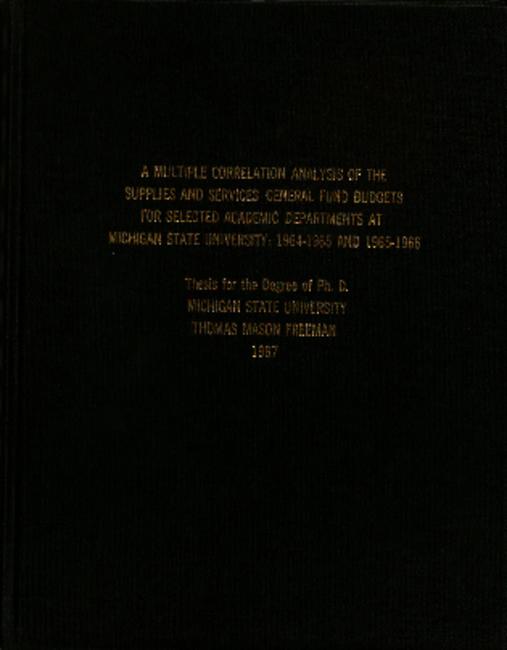 A multiple correlation analysis of the Supplies and Services general fund budgets for selected academic departments at Michigan State University 1964-65 and 1965-66