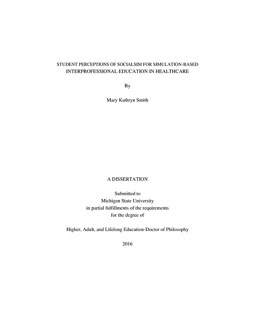This descriptive qualitative study investigates perceptions of students regarding the use of SocialSim, a tool designed to deliver simulation in a virtual environment using social media as a platform to facilitate inteprofessional education. There have been exponential changes in U.S. healthcare system in recent years, prompting the need for institutions in higher education to prepare students to function effectively as members of an inteprofessional team. Coinciding with this is advancement in the field of healthcare simulation and virtual methodologies. The incorporation of these three into a learning experience for IPE has not been previously explored and became the impetus for my study. I developed SocialSim as a novel tool using social media as a platform to deliver a simulation facilitating interprofessional education. I examine the use of this tool and experiences of twenty healthcare professional students at a major public university. Through the analysis of semi-structured interviews, this study examines student perspectives related to the use of SocialSim as a new tool for IPE. The results can inform administrators and faculty decisions in addition to expanding the field of healthcare simulation.