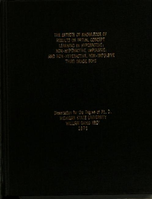 The effects of knowledge of results on initial concept learning in hyperactive ; non-hyperactive, impulsive ; and non-hyperactive, non-impulsive third grade boys
