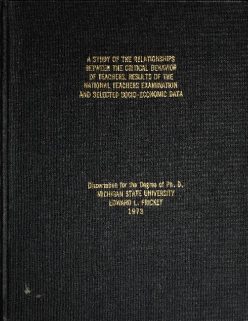 A study of the relationships between the critical behavior of teachers, results of the National Teachers Examination and selected socio-economic data