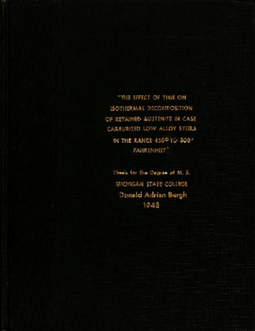 "The effect of time on the isothermal decomposition of retained austenite in case carburized low alloy steels in the range 450 to 800 degrees fahrenheit"
