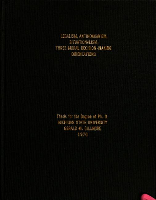 Legalism, antinomianism, situationalism : three moral decision-making orientations